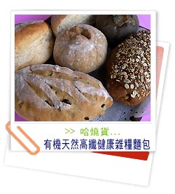 將天然的葡萄種菌,經過一週的培養,轉成麥種菌,再加入各種有機高纖雜糧入麵包內,烘焙成香Q、柔軟的健康美味,讓您享受香醇健康的原味。